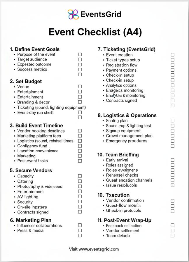 A smooth event doesn’t happen by accident it’s the result of structured planning, reliable systems, and a detailed checklist guiding every step. Use this Event Checklist Guide to stay organized, reduce stress, and deliver an unforgettable experience your audience will remember.